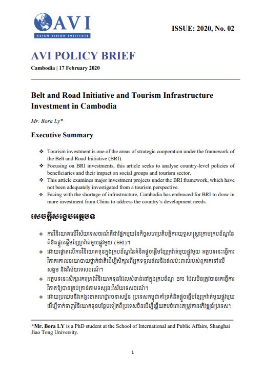 AVI POLICY BRIEF ISSUE: 2020, No. 02 | Belt and Road Initiative and Tourism Infrastructure Investment in Cambodia