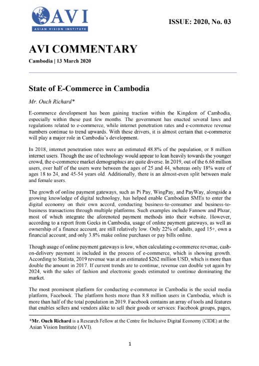 AVI COMMENTARY ISSUE: 2020, No. 03 | State of E-Commerce in Cambodia