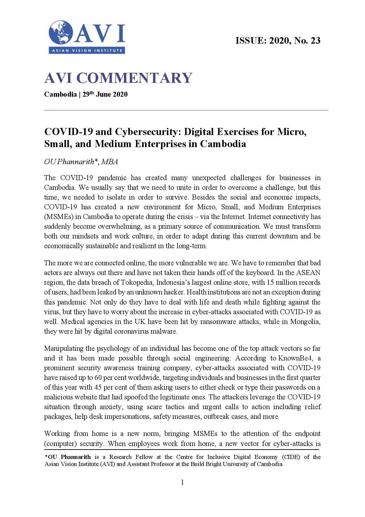 AVI COMMENTARY ISSUE: 2020, No. 23