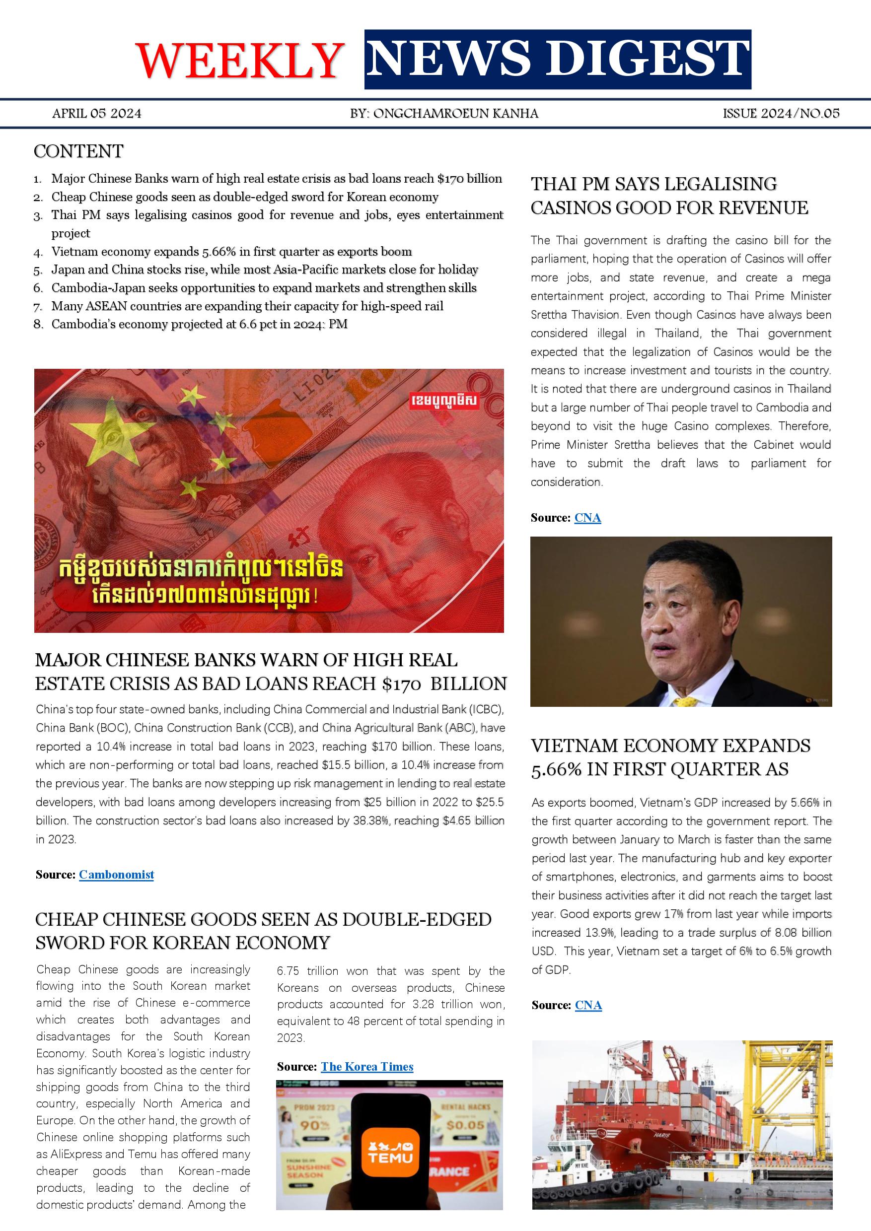 AVI ECONOMY AND FINANCE WEEKLY NEWS DIGEST | ISSUE: 2024, No. 05