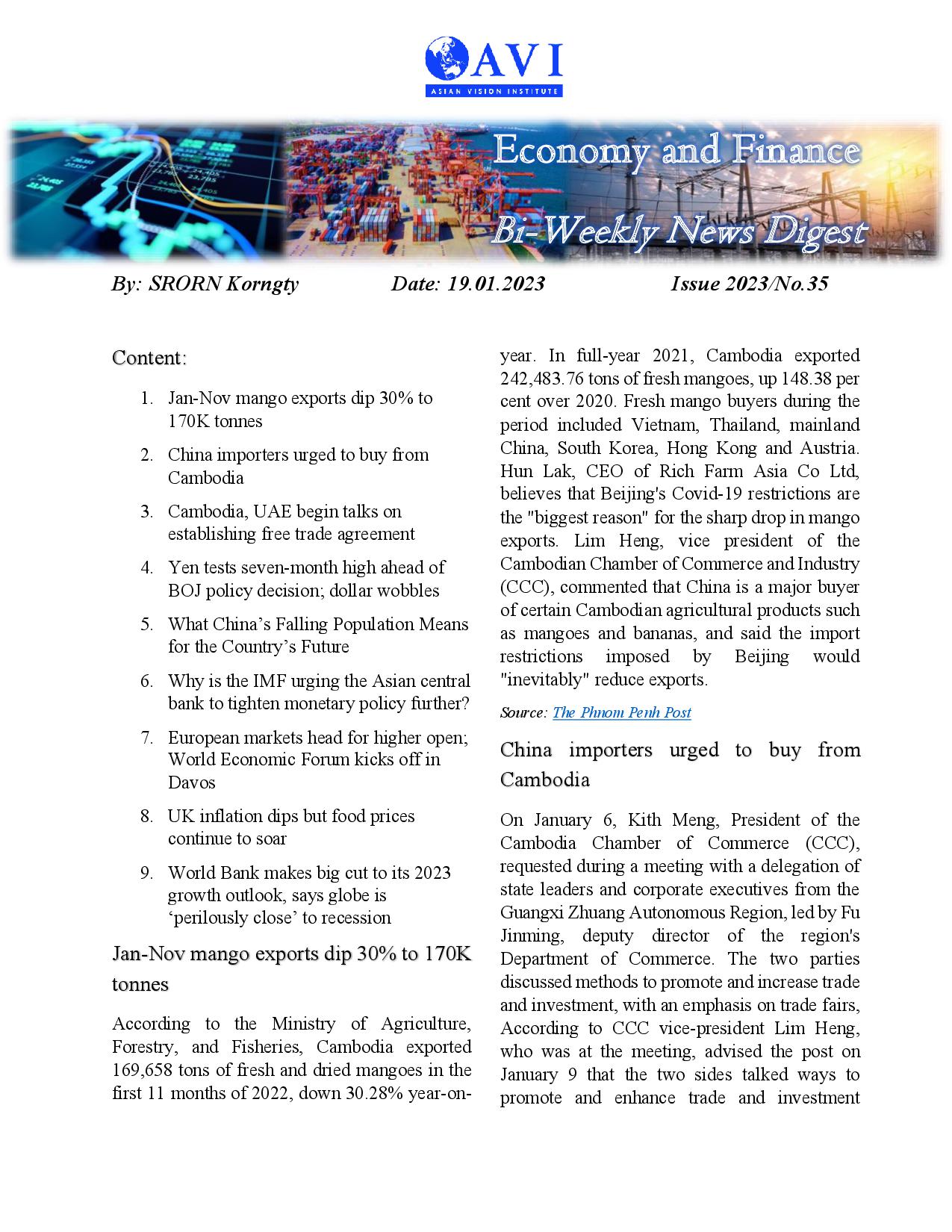 AVI ECONOMY AND FINANCE WEEKLY NEWS DIGEST | ISSUE: 2024, No. 01