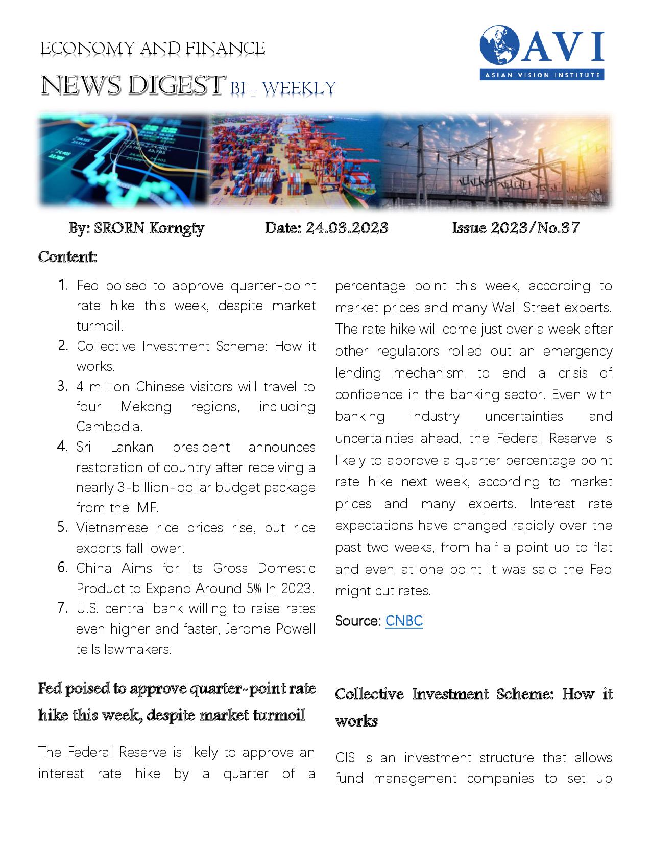 AVI ECONOMY AND FINANCE WEEKLY NEWS DIGEST, ISSUE: 2023, No. 37