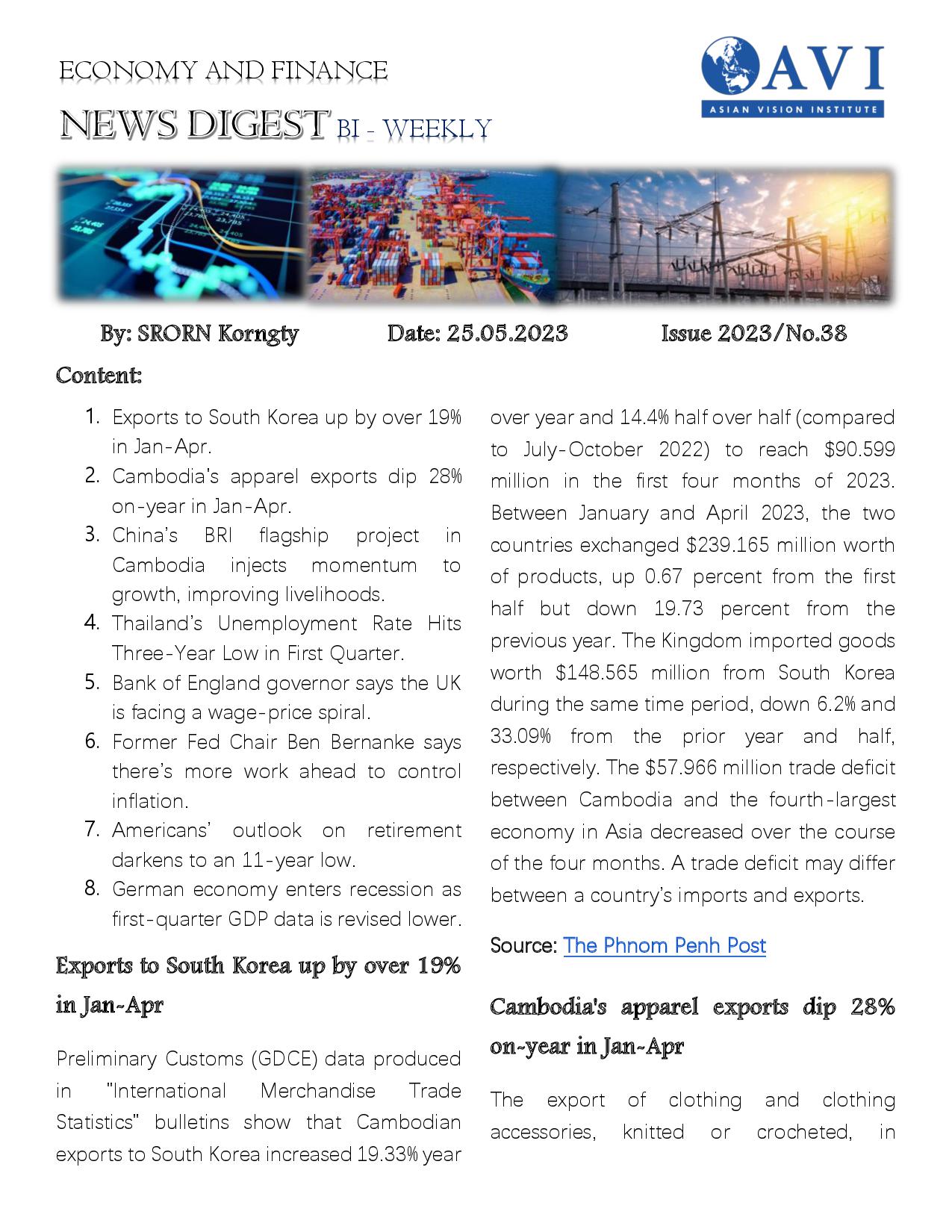 AVI ECONOMY AND FINANCE WEEKLY NEWS DIGEST, ISSUE: 2023, No. 38