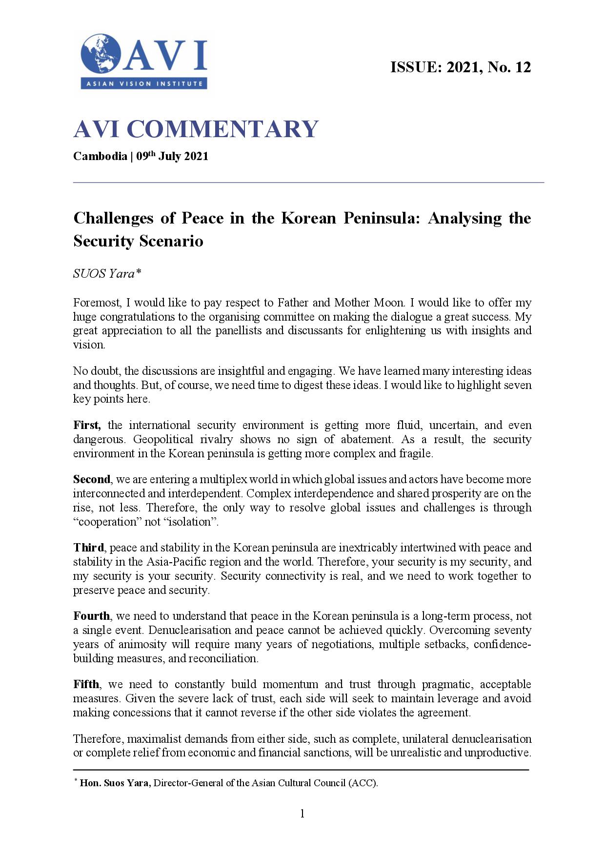 AVI COMMENTARY ISSUE: 2021, No. 12 | Challenges of Peace in the Korean Peninsula: Analysing the Security Scenario