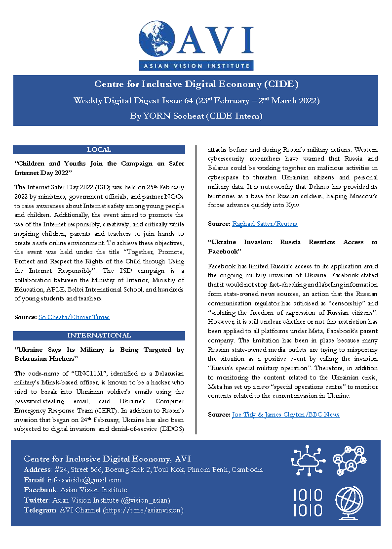 AVI DIGITAL WEEKLY NEWS DIGEST, ISSUE: 2022, No. 64