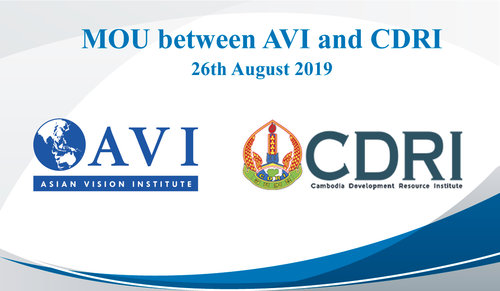 Asian Vision Institute (AVI) and Cambodia Development Resource Institute (CDRI) have agreed to strengthen its cooperative partnership with one another. With common purpose to enhance development and develop more innovative idea for decision makers, AVI and CDRI will sign a Memorandum of Understanding on the 26th August 2019 as planned.