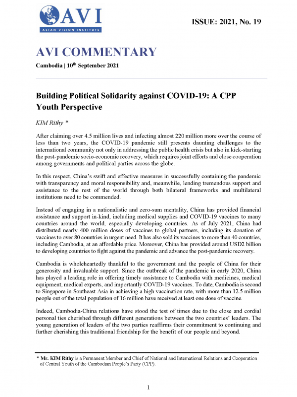 AVI COMMENTARY ISSUE: 2021, NO. 19 | Building Political Solidarity against COVID-19: A CPP Youth Perspective