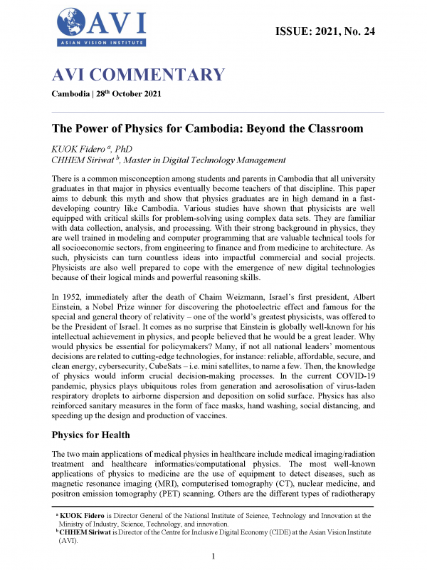 AVI COMMENTARY ISSUE: 2021, NO. 24 | The Power of Physics for Cambodia: Beyond the Classroom