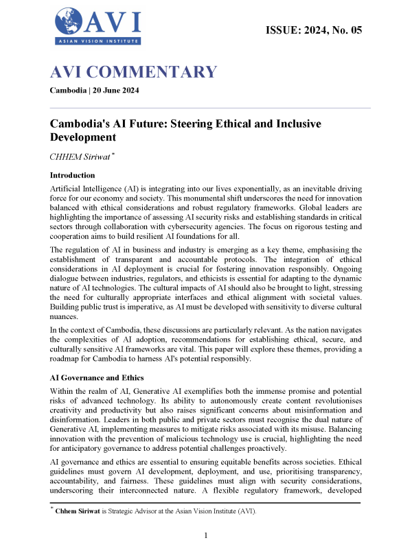 AVI COMMENTARY ISSUE: 2024, No. 05 | Cambodia’s AI Future: Steering Ethical and Inclusive Development