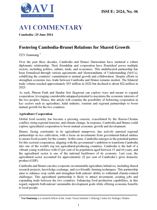AVI COMMENTARY ISSUE: 2024, No. 06 | Fostering Cambodia-Brunei Relations for Shared Growth