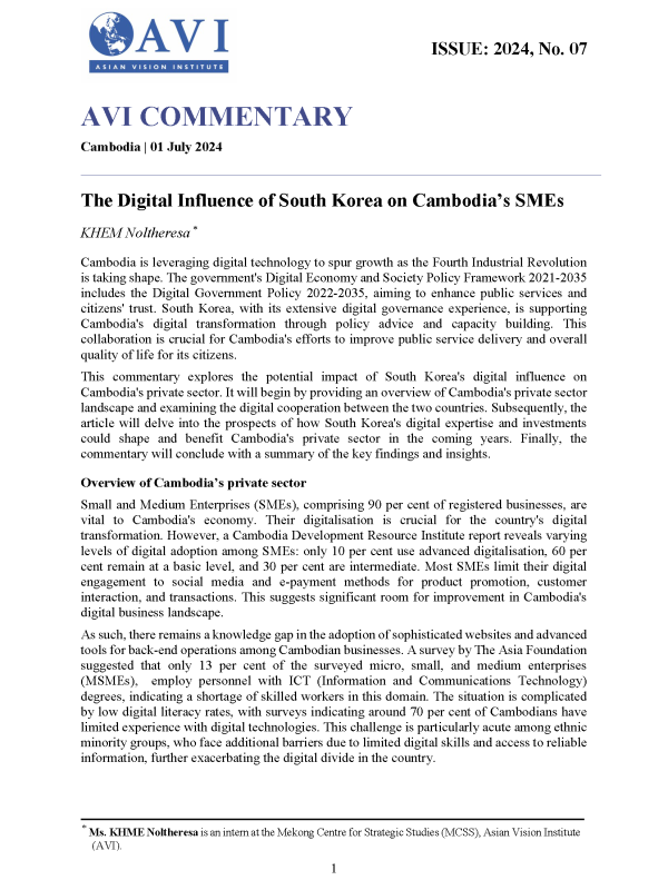 AVI COMMENTARY ISSUE: 2024, No. 07 | The Digital Influence of South Korea on Cambodia’s SMEs