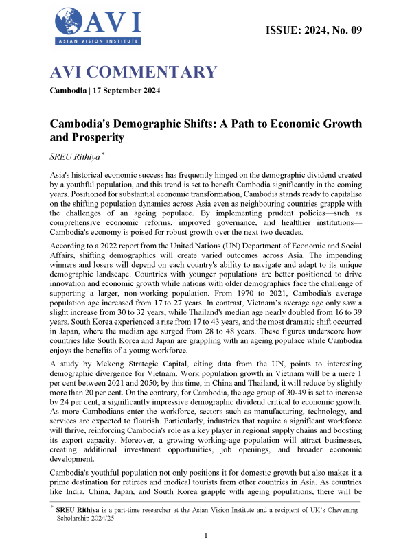 AVI COMMENTARY ISSUE: 2024, No. 09 | Cambodia’s Demographic Shifts: A Path to Economic Growth and Prosperity