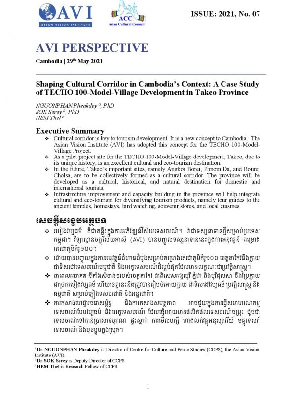 AVI PERSPECTIVE ISSUE: 2021, No. 07 | Shaping Cultural Corridor in Cambodia’s Context: A Case Study of TECHO 100-Model-Village Development in Takeo Province