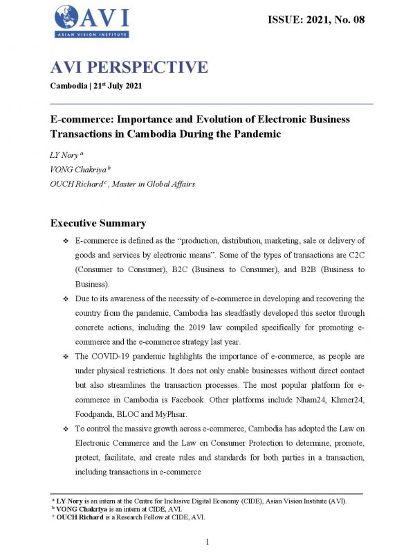 AVI PERSPECTIVE ISSUE: 2021, No. 08 | E-COMMERCE: IMPORTANCE AND EVOLUTION OF ELECTRONIC BUSINESS TRANSACTIONS IN CAMBODIA DURING THE PANDEMIC