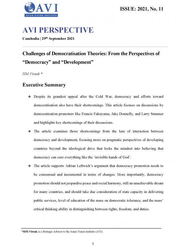 AVI PERSPECTIVE ISSUE: 2021, No. 11 | Challenges of Democratisation Theories: From the Perspectives of “Democracy” and “Development”
