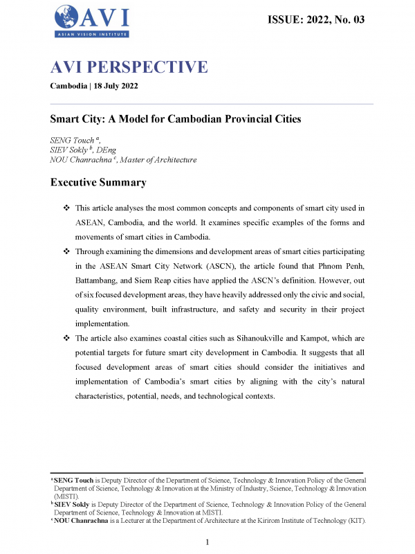 AVI PERSPECTIVE ISSUE: 2022, No. 03 | Smart City: A Model for Cambodian Provincial Cities