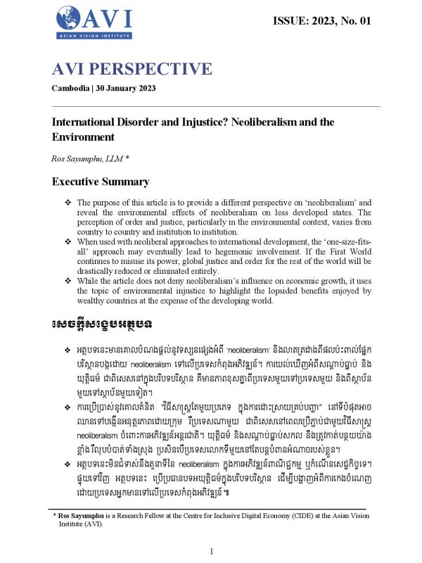 AVI PERSPECTIVE ISSUE: 2023, No. 01 | International Disorder and Injustice? Neoliberalism and the Environment