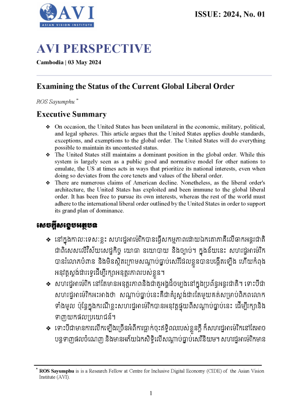 AVI PERSPECTIVE ISSUE: 2024, No. 01 | Examining the Status of the Current Global Liberal Order