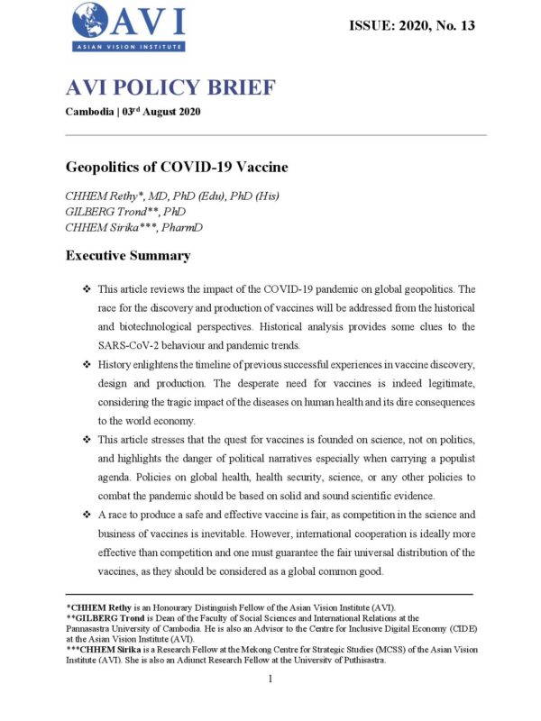 AVI POLICY BRIEF ISSUE: 2020, No. 13 | Geopolitics of COVID-19 Vaccine