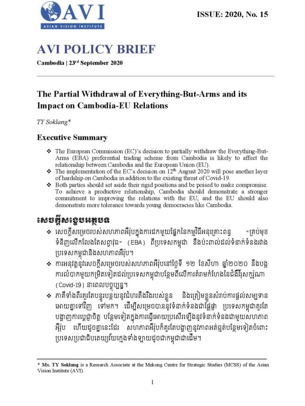 AVI POLICY BRIEF ISSUE: 2020, No. 15 | The Partial Withdrawal of Everything-But-Arms and its Impact on Cambodia-EU Relations