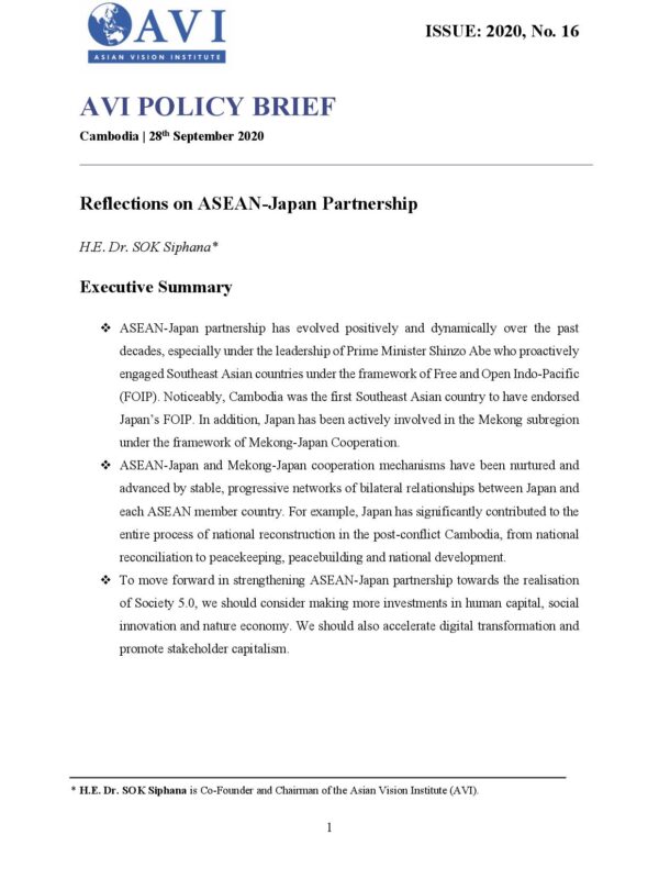 AVI POLICY BRIEF ISSUE: 2020, No. 16 | Reflections on ASEAN-Japan Partnership