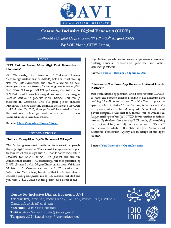 AVI DIGITAL WEEKLY NEWS DIGEST, ISSUE: 2022, No. 77