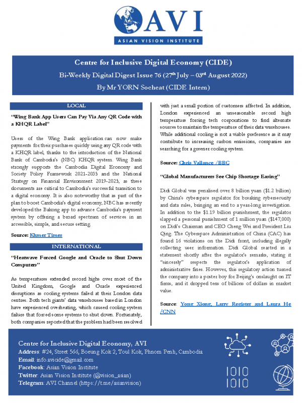AVI DIGITAL BI-WEEKLY NEWS DIGEST, ISSUE: 2022, No. 75