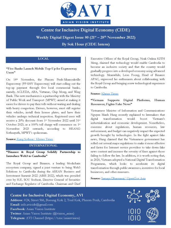 AVI DIGITAL WEEKLY NEWS DIGEST, ISSUE: 2022, No. 80