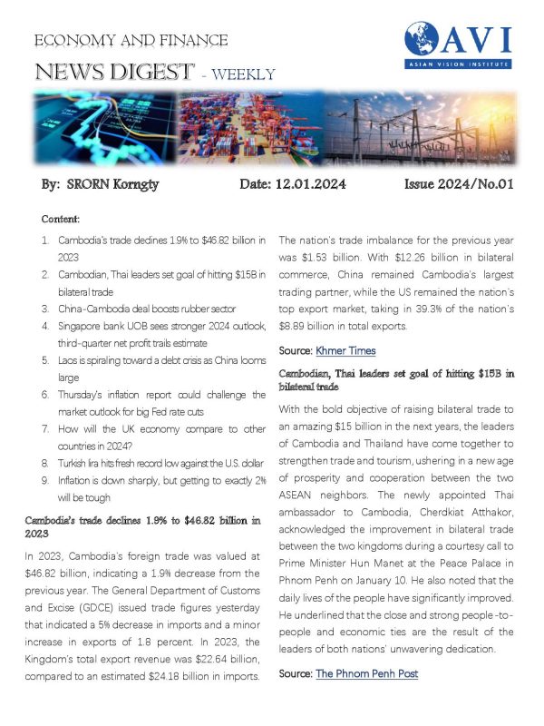 AVI ECONOMY AND FINANCE WEEKLY NEWS DIGEST | ISSUE: 2024, No. 01