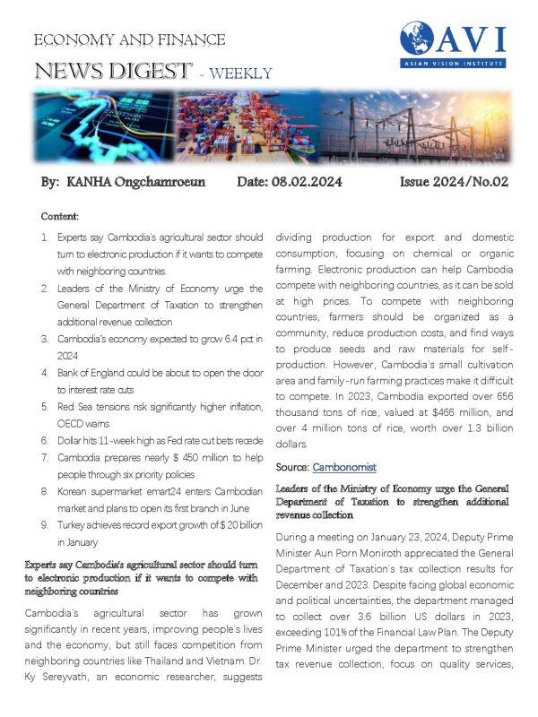 AVI ECONOMY AND FINANCE WEEKLY NEWS DIGEST | ISSUE: 2024, No. 02