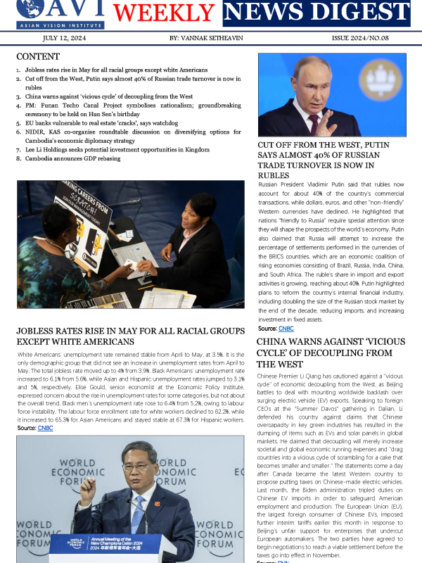 AVI ECONOMY AND FINANCE WEEKLY NEWS DIGEST | ISSUE: 2024, No. 03