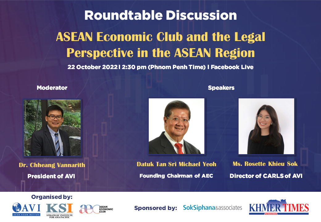 ASEAN Economic Club (AEC) is a new initiative advocates for closer economic integration by organising a high-level ASEAN Economic Forum in various ASEAN cities. The new initiative aims at promoting research and proposing policy recommendations to ASEAN Leaders, Economic Ministers & Secretariat. We are pleased to commence AEC’s branch in Phnom Penh along side with our new Centre, Centre for Advanced Research and Legal Studies (CARLS).