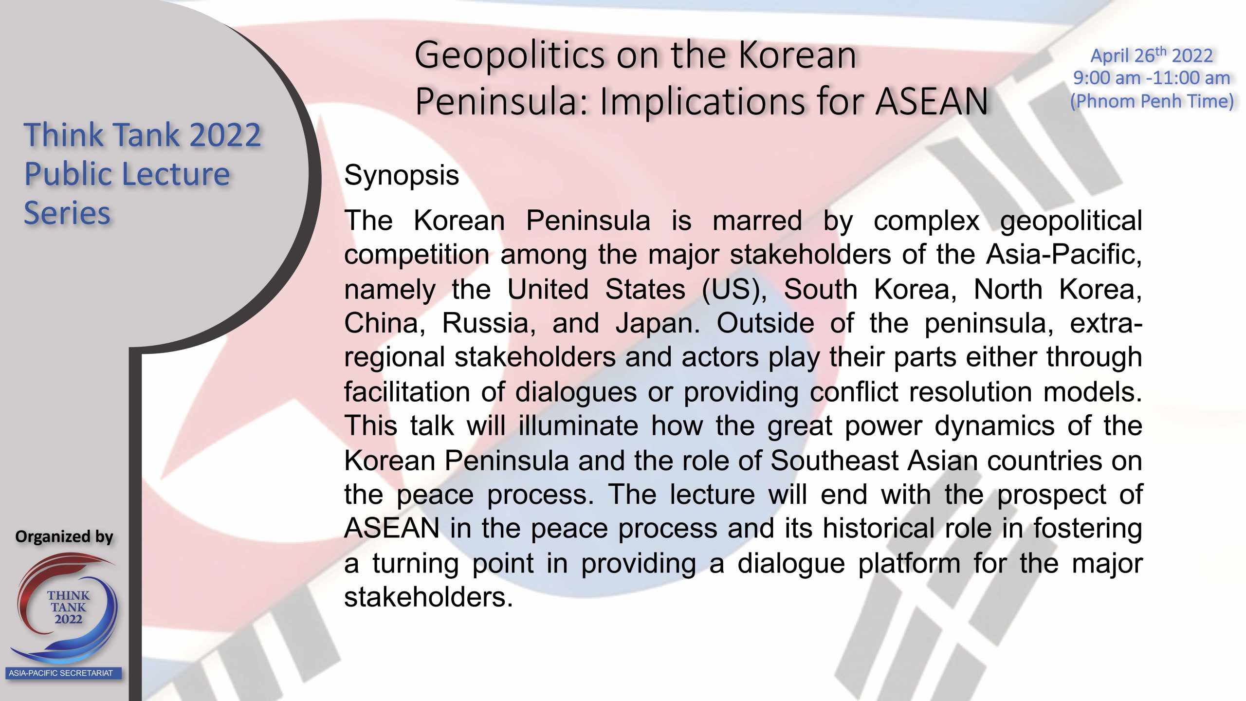 Think Tank 2022 Public Lecture Series: Geopolitics on the Korean Peninsula: Implications for ASEAN