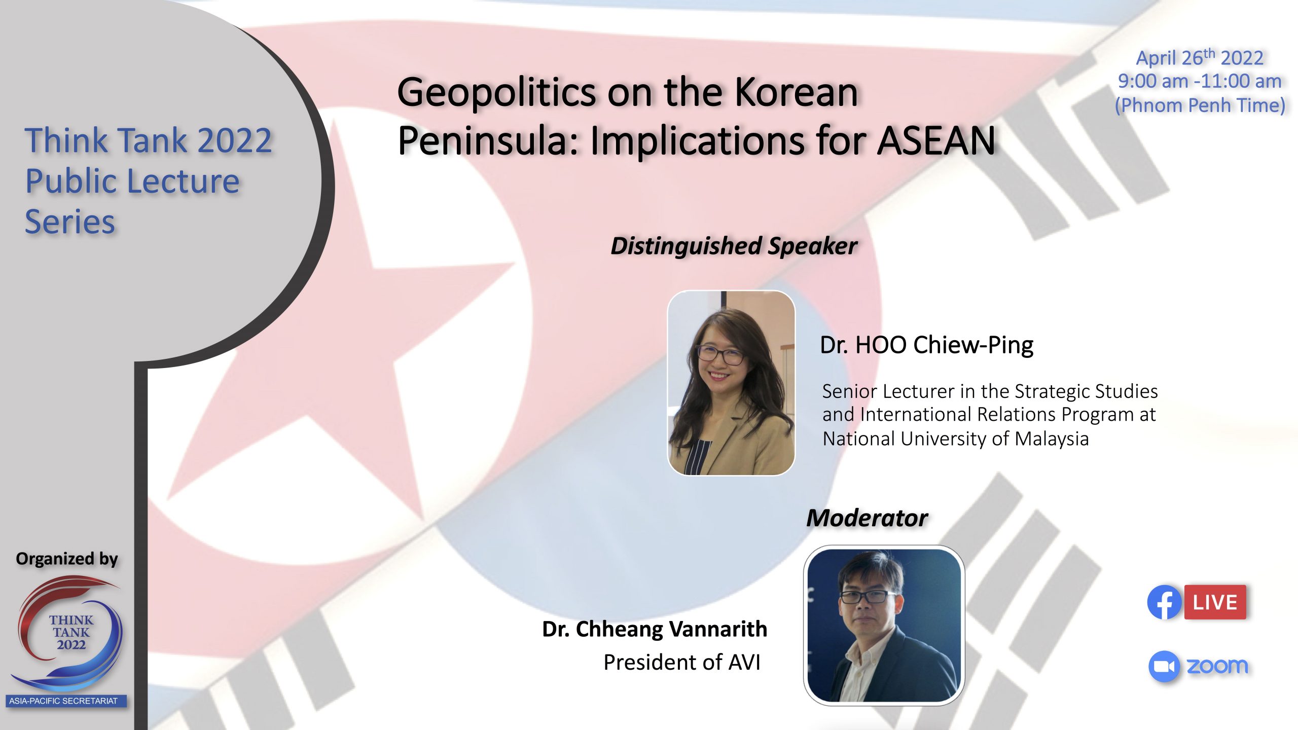 Do you want to know more about the implications on the Korean Peninsula? Come join us on the 26th April 2022 from 9 am to 11 am (Phnom Penh Time). The Program will host via ZOOM and LIVE on AVI’s Facebook page. Please refer to the links below: